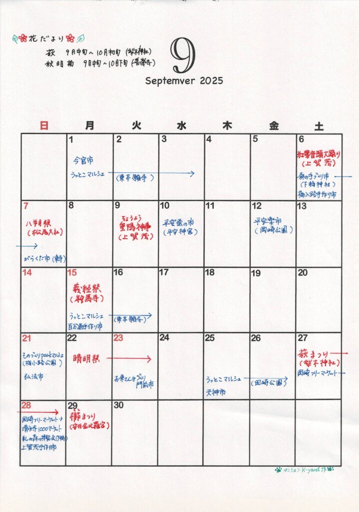 2025/9/69月お祭りイベント縁日フリマをカレンダー 調べた限り愛犬と同伴可能なものをピックアップしましたが、 同伴ルール約束事につきましては各施設・主催者に直接ご確認くださいませ。 お知らせ一覧へ戻る